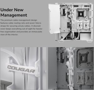 The premium cable management design features cable routing rails and seven Velcro straps for securing unruly cables. A discreet cover keeps everything out of sight for hassle-free organization and provides an immaculate view of the interior.