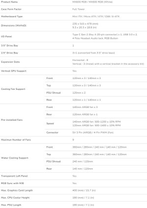 The MX600 RGB supports dual top and front 360mm water cooling options.