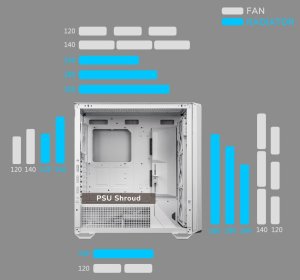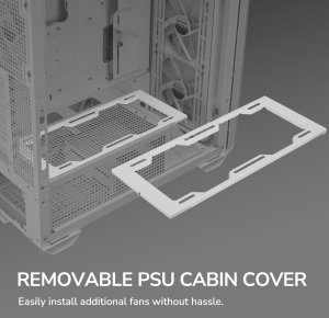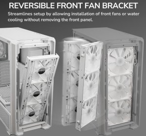 Its front fan bracket design streamlines setup by allowing installation of front fans or water cooling without removing the front panel. The fully detachable top cover offers abundant space for system components, and an easily removable PSU cabin cover lets you install or change without hassle. Fans or a 360mm water cooling system can be directly mounted on the top cover, securely fixed when reattached.