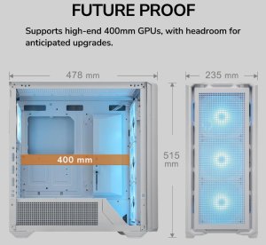 Experience a perfect storm of cooling features with full ventilation, strategic filtering and targeted convection guidance. The MX600 RGB raises the bar for compact design: a future-proofed full-tower capacity, versatile GPU orientation, streamlines setup, and efficient cable management… all with just a mid-tower footprint.