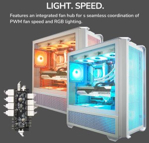 The MX600 RGB features an integrated universal fan hub that enables seamless coordination of PWM fan speed and RGB lighting. This allows you to control the RGB lighting without the need for software, or synchronize it with motherboard software.