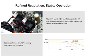 Konstrukce GES LLC, DC-DC a Tri-Sense (3,3 V, 5 V a 12 V) poskytuje vysoce kvalitní výstupy a zajišťuje mimořádně stabilní provoz.