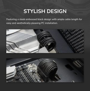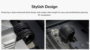 Elegantní embosovaný černý design s dostatečnou délkou kabelu pro snadnou a estetickou instalaci počítače.