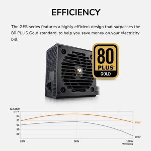 Řada GES se vyznačuje vysoce účinnou konstrukcí, která překračuje standard 80 PLUS Gold, aby vám pomohla ušetřit peníze za elektřinu.