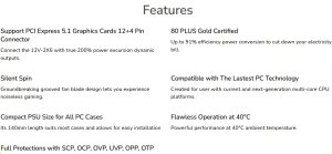 - Podporuje grafické karty PCI Express 5.1 s konektorem 12+4 pinů pro skutečné dynamické výstupy s 200% vybuzením.
