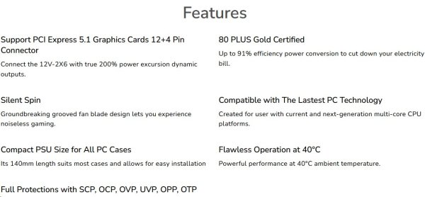 - Certifikát 80 PLUS Gold pro až 91% účinnost při konverzi energie, což snižuje účty za elektřinu.