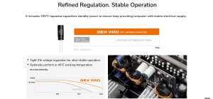Obsahuje japonské kondenzátory 105°C, které zajišťují stabilní napájení počítače.