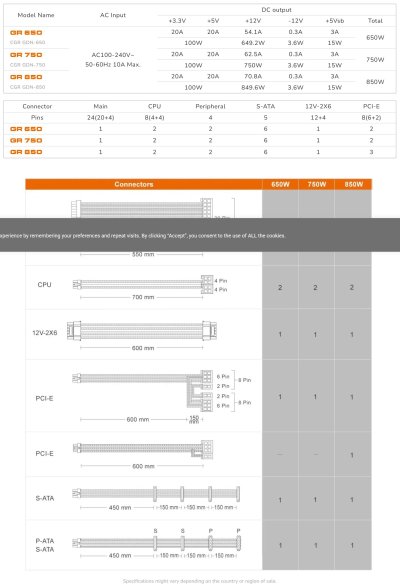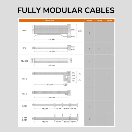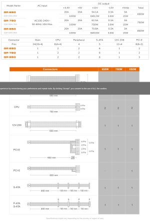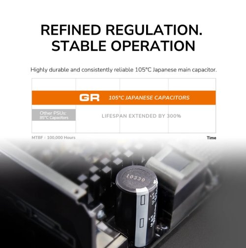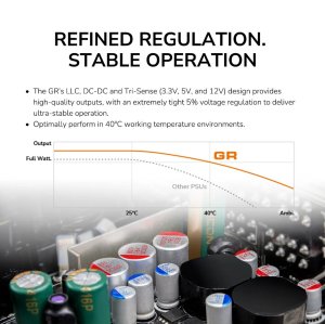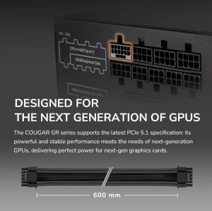 Napájecí zdroje COUGAR GR 650/750/850W jsou plně modulární, vysoce účinné a kompatibilní s nejnovějšími standardy ATX 3.1 a PCIe 5.1.
