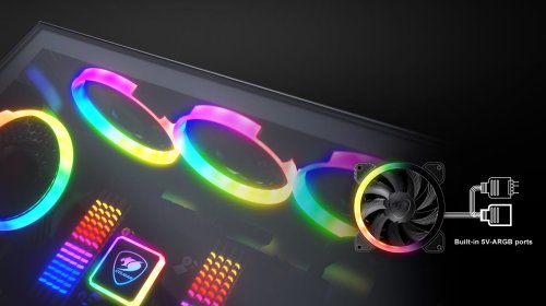 With the built-in 5V-ARGB plugs and 18 ARGB lamp beads, COUGAR VORTEX VK120 cooling fan provides various and colorful lighting effects from the front, inner and outer sides through the light ring at the same time. Because of this, players can enjoy wonderful lighting effects from any angle of the fan.