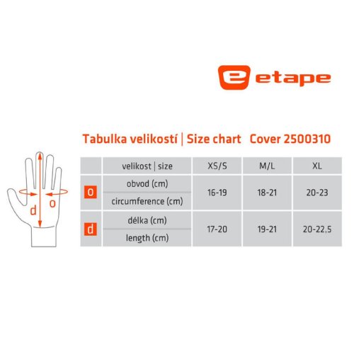 Rukavice Etape Cover jsou vhodné na sport i běžné nošení pro teplotní rozmezí -10 °C až 10 °C. Tento model v sobě kombinuje lehké prstové rukavice a teplé palčáky. Díky technologii SmartTouch je možné ovládat displeje mobilních telefonů, tabletů, MP3 přehrávačů, kamer, fotoaparátů nebo navigací. Rukavice jsou vyrobeny z kombinace SoftShell a ThermoFit materiálu. Softshell je elastický materiál odolný větru a vodě. ThermoFit je elastický materiál s výbornými termoizolačními vlastnostmi. - uvedené velikosti jsou pouze orientační, vhodná velikost se může lišit dle konkrétní postavy - rukavice 2v1 – prstové lehké rukavice a teplé palčáky v jednom výrobku - elastický materiál ThermoFit se zateplením – rukavice - elastický materiál s membránou SoftShell – vrchní vrstva - ovládání dotykového displeje SmartTouch - protiskluzový silikon na dlani - prodloužené elastické zápěstí - reflexní bezpečnostní prvky - teplotní rozsah: -10 °C až 10 °C