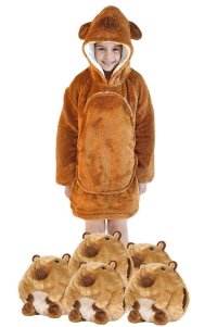 Velká mikina s kapucí s motivem zvířátka, která plní funkci teploučké, měkoučké a nadýchané deky, která zahřeje při každé příležitosti a navíc děti potěší svým hravým a líbivým designem. Vnitřek mikiny byl vyroben z hřejivého nadýchaného sherpa fleecu a lícová strana ze super měkkého hebkého materiálu, používaného na výrobu těch nejměkčích dek. Všechny mikiny z této řady mají i velikou přední kapsu, ve které se dají krásně ohřát studené ruce. Každé dítě se v ní bude jistě cítit pohodlně, ať už doma na gauči při sledování televize nebo odpočinku, nebo jen tak při hraní si, kdy ho nijak nebude omezovat v pohybu. Velmi praktická je ale i při stanování či jiných outdoorových aktivitách nebo jen tak při venkovním posezení na zahradě v chladnějším počasí. Tato mikina a deka v jednom je krásným a praktickým dárkem. V nabídce Cozy Noxxiez najdete v mnoha případech ve stejném designu i hřejivý plyšový polštář 3 v 1, obří hřejivý pantofel, nebo hřejivou deku s kapucí se zvířátkem a tlapkovými kapsami a můžete mít tak celou zahřívací sadu perfektně sladěnou.