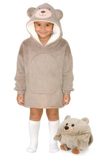 Velká mikina s kapucí s motivem zvířátka, která plní funkci teploučké, měkoučké a nadýchané deky, která zahřeje při každé příležitosti a navíc děti potěší svým hravým a líbivým designem. Vnitřek mikiny byl vyroben z hřejivého nadýchaného sherpa fleecu a lícová strana ze super měkkého hebkého materiálu, používaného na výrobu těch nejměkčích dek. Všechny mikiny z této řady mají i velikou přední kapsu, ve které se dají krásně ohřát studené ruce. Každé dítě se v ní bude jistě cítit pohodlně, ať už doma na gauči při sledování televize nebo odpočinku, nebo jen tak při hraní si, kdy ho nijak nebude omezovat v pohybu. Velmi praktická je ale i při stanování či jiných outdoorových aktivitách nebo jen tak při venkovním posezení na zahradě v chladnějším počasí. Tato mikina a deka v jednom je krásným a praktickým dárkem. V nabídce Cozy Noxxiez najdete v mnoha případech ve stejném designu i hřejivý plyšový polštář 3 v 1, obří hřejivý pantofel, nebo hřejivou deku s kapucí se zvířátkem a tlapkovými kapsami a můžete mít tak celou zahřívací sadu perfektně sladěnou.