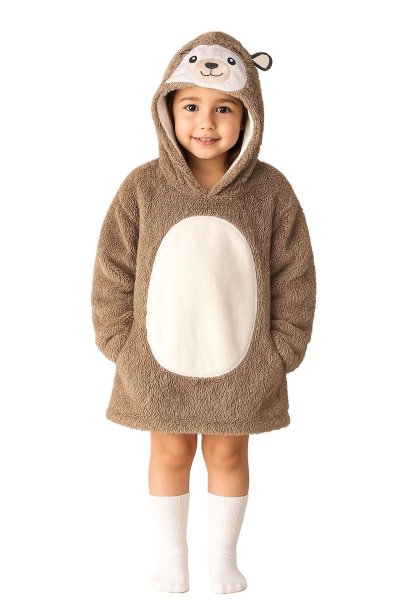 Velká mikina s kapucí s motivem zvířátka, která plní funkci teploučké, měkoučké a nadýchané deky, která zahřeje při každé příležitosti a navíc děti potěší svým hravým a líbivým designem. Vnitřek mikiny byl vyroben z hřejivého nadýchaného sherpa fleecu a lícová strana ze super měkkého hebkého materiálu, používaného na výrobu těch nejměkčích dek. Všechny mikiny z této řady mají i velikou přední kapsu, ve které se dají krásně ohřát studené ruce. Každé dítě se v ní bude jistě cítit pohodlně, ať už doma na gauči při sledování televize nebo odpočinku, nebo jen tak při hraní si, kdy ho nijak nebude omezovat v pohybu. Velmi praktická je ale i při stanování či jiných outdoorových aktivitách nebo jen tak při venkovním posezení na zahradě v chladnějším počasí. Tato mikina a deka v jednom je krásným a praktickým dárkem. V nabídce Cozy Noxxiez najdete v mnoha případech ve stejném designu i hřejivý plyšový polštář 3 v 1, obří hřejivý pantofel, nebo hřejivou deku s kapucí se zvířátkem a tlapkovými kapsami a můžete mít tak celou zahřívací sadu perfektně sladěnou.