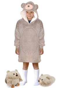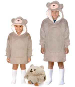Velká mikina s kapucí s motivem zvířátka, která plní funkci teploučké, měkoučké a nadýchané deky, která zahřeje při každé příležitosti a navíc děti potěší svým hravým a líbivým designem. Vnitřek mikiny byl vyroben z hřejivého nadýchaného sherpa fleecu a lícová strana ze super měkkého hebkého materiálu, používaného na výrobu těch nejměkčích dek. Všechny mikiny z této řady mají i velikou přední kapsu, ve které se dají krásně ohřát studené ruce. Každé dítě se v ní bude jistě cítit pohodlně, ať už doma na gauči při sledování televize nebo odpočinku, nebo jen tak při hraní si, kdy ho nijak nebude omezovat v pohybu. Velmi praktická je ale i při stanování či jiných outdoorových aktivitách nebo jen tak při venkovním posezení na zahradě v chladnějším počasí. Tato mikina a deka v jednom je krásným a praktickým dárkem. V nabídce Cozy Noxxiez najdete v mnoha případech ve stejném designu i hřejivý plyšový polštář 3 v 1, obří hřejivý pantofel, nebo hřejivou deku s kapucí se zvířátkem a tlapkovými kapsami a můžete mít tak celou zahřívací sadu perfektně sladěnou.
