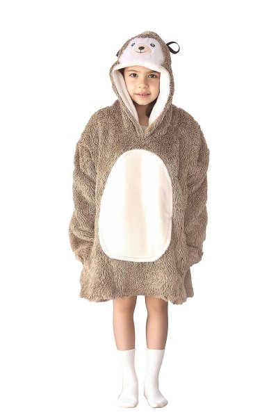 Velká mikina s kapucí s motivem zvířátka, která plní funkci teploučké, měkoučké a nadýchané deky, která zahřeje při každé příležitosti a navíc děti potěší svým hravým a líbivým designem.