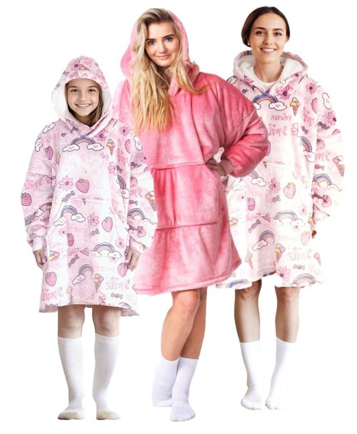 Cozy Noxxiez CH341 Sladkosti potisk - hřejivá televizní mikinová deka s kapucí pro děti 7 - 12 let