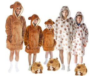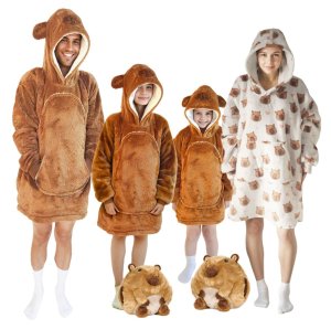 Cozy Noxxiez CH364 Kapybara - hřejivá televizní mikinová deka s kapucí pro teenagery a dospělé