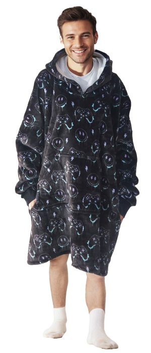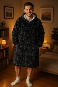 Velká mikina s kapucí, která plní funkci teploučké, měkoučké a nadýchané deky, jež zahřeje při každé příležitosti. Vnitřek mikiny byl vyroben z hřejivého nadýchaného sherpa fleecu a lícová strana ze super měkkého hebkého materiálu, používaného na výrobu těch nejměkčích dek. Všechny mikiny z této řady mají i velikou přední kapsu, ve které se dají krásně ohřát studené ruce. Každý se v ní bude jistě cítit pohodlně, ať už doma na gauči při sledování televize, čtení knížky, nebo jiném druhu odpočinku, kdy ho nijak nebude omezovat v pohybu. Dobré využití se najde třeba i při práci na PC, kdy se člověk opravdu moc nezahřeje. Velmi praktická je ale i při stanování či jiných outdoorových aktivitách nebo jen tak při venkovním posezení na zahradě v chladnějším počasí. Tato mikina a deka v jednom od značky Cozy Noxxiez je krásným a praktickým dárkem pro ženy i muže, díky vtipným potiskům, nebo variantě bez nich. V nabídce Cozy Noxxiez najdete v některých motivech i ucelené kolekce, které obsahují: hřejivý plyšový polštář 3 v 1, obří hřejivý pantofel, nebo hřejivou deku s kapucí se zvířátkem a tlapkovými kapsami a můžete mít tak celou zahřívací sadu perfektně sladěnou.