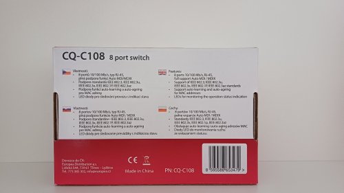 Spolehlivý 8 portový přepínač CQpoint CQ-C108. Podporuje přenosovou rychlost až 200 Mbps v plném duplexu. Switch pracuje ve standardu IEEE 802.3x a nabízí LED indikaci stavu jednotlivých portů.