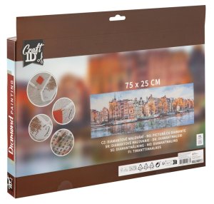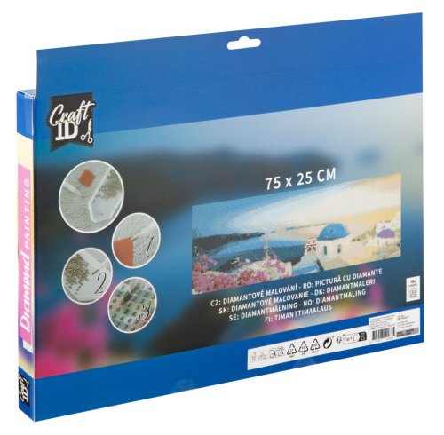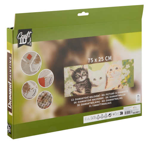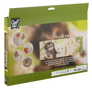 Pusťte se do tvorby detailního mozaikového obrazu pomocí techniky Diamond malování. Výsledná obrázek má velikost 75×25 cm. Sada obsahuje plátnos předtištěným vzorem a speciální lepící vrstvou, sadu barevných kamínků, aplikační pero, vosk a misku na kamínky. Ve čtyřech vzorech – koťátka, holandské město, podmořský svět a řecké moře.