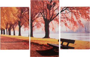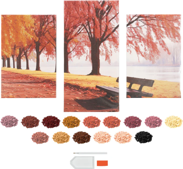 Kreativní sada Diamond Painting Triptych ti umožní vytvořit dechberoucí třídílný obraz s motivem krajiny. Každé plátno je potištěné speciálním vzorem s lepicí vrstvou, do které snadno umístíš barevné diamantové kamínky podle přiložené legendy. Výsledek tvoří krásný třpytivý obraz, který zaujme na každé stěně. Diamantové malování je ideální činnost pro děti i dospělé – podporuje soustředění, trpělivost a jemnou motoriku. Je to skvělá forma relaxace, u které si odpočineš a zároveň vytvoříš jedinečnou dekoraci. Výhody sady