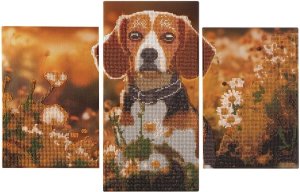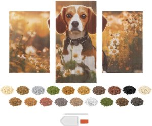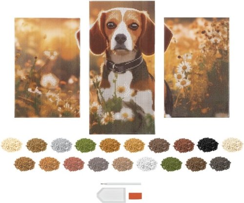 Kreativní sada Diamond Painting Triptych ti umožní vytvořit dechberoucí třídílný obraz s motivem psa. Každé plátno je potištěné speciálním vzorem s lepicí vrstvou, do které snadno umístíš barevné diamantové kamínky podle přiložené legendy. Výsledek tvoří krásný třpytivý obraz, který zaujme na každé stěně. Diamantové malování je ideální činnost pro děti i dospělé – podporuje soustředění, trpělivost a jemnou motoriku. Je to skvělá forma relaxace, u které si odpočineš a zároveň vytvoříš jedinečnou dekoraci. Výhody sady