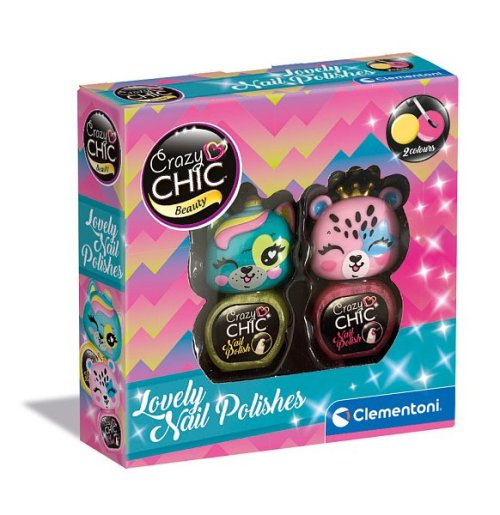 Do kolekce Lovely řady Crazy Chic byla přidána nová sada laků na nehty. Každé roztomilé zvířátko představuje jednu barvu laku na nehty pro vytvoření super elegantních nehtů. Obsahuje: 2 laky na nehty v různých barvách, abyste si mohli vytvořit nehtovou kresbu podle vlastního stylu a rozvíjet tak kreativitu a manuální zručnost. Sladká zvířátka nosí malou zlatou korunku nebo mají různobarevný roh, stejně jako ostatní zvířátka z řady Lovely Crazy Chic, která je třeba nasbírat. Laky jsou testovány tak, aby si s nimi malé holčičky mohly hrát a bavit se zcela bezpečně, a jsou odstranitelné třením bez použití rozpouštědla.