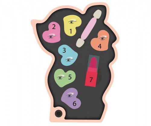 S touto sadou líčidel, v praktickém pouzdru ve tvaru kolouška se zlatou korunou, se můžete nalíčit i na cestách. Sada obsahuje 6 trendy očních stínů, 1 rtěnku a aplikátor. Líčidla jsou bezpečná. Herní sada stimuluje kreativitu a manuální dovednost mladých dívek v obasti krásy a kosmetiky. Rozměr balení: 27 x 22 x 5 cm. Věk: 6+