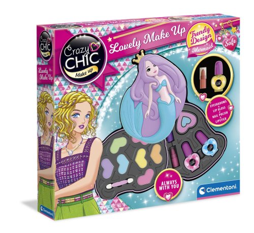 Exkluzivní dvoukazetová make - up sada Crazy CHIC ve tvaru mořské panny je super kompaktní, s paletou jemných odstínů pro přirozený a trendy vzhled. Paleta barev obsahuje 7 očních stínů, 3 rtěnky, aplikátor na oční stíny, 3 laky na nehty a lesk na rty ve tvaru srdíčka. Sada stimuluje kreativitu a manuální dovednost mladých dívek v oblasti krásy a kosmetiky. Rozměry balení: 30 x 34 x 6 cm. Věk: 6+