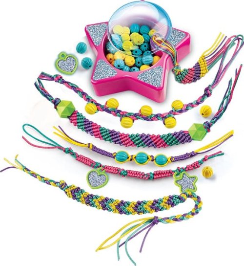 Sada na výrobu pestrobarevných náramků přátelství, které budou elegantní a módní! Sada obsahuje speciální pomůcku na pletení náramků pomocí barevných nití a korálků. Výtvory lze obohatit o spoustu barevných korálků! Hravá aktivita, kterou lze provádět i s kamarády a která zaručuje zábavu.