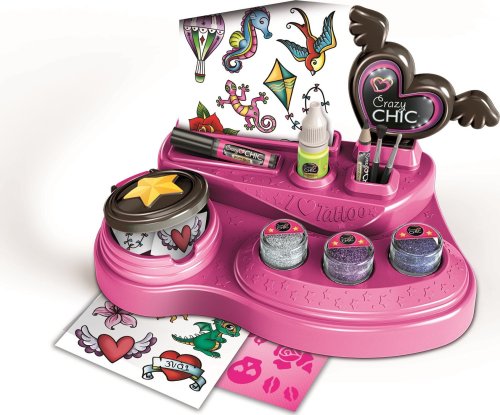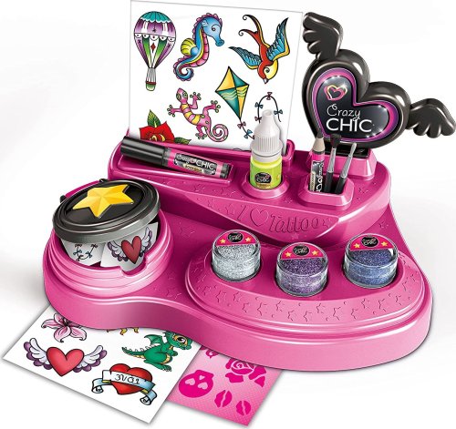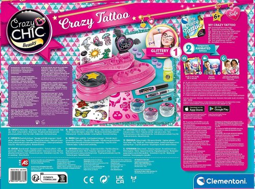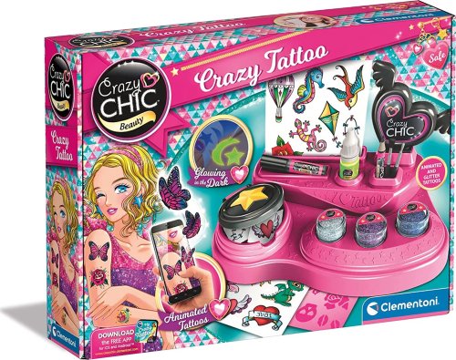 Pro dívky, které mají rády tetování, je tu nová super cool sada pro vytváření trendy tetování s jiskřivými barvami. Díky praktickému pracovnímu stolu s příslušenstvím bude popustit uzdu fantazii a kreativitě dětskou hrou. Produkt obsahuje nalepovací šablony, barevné třpytky a tělové barvivo s efektem svítící ve tmě. Exkluzivně pro Crazy Girls obsahuje pracovní stůl také fantastická tetování s rozšířenou realitou. S aplikací Crazy Tattoo se tetování stanou magicky 3D. Můžete je fotografovat, personalizovat a především sdílet se svými přáteli prostřednictvím nejmódnějších kanálů sociálních sítí!