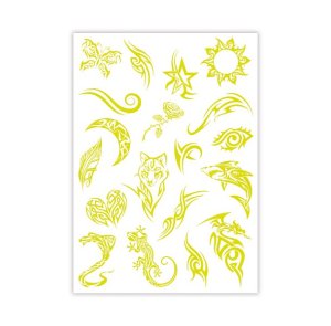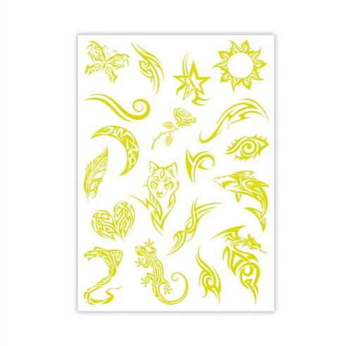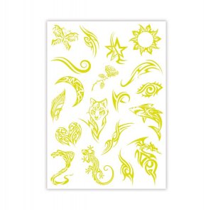 Fantastická tetování svítící ve tmě, díky kterým budete vypadat úžasně a ve tmě se rozzáříte! Sada s dočasnými tetováními s trendy vzory, abyste mohli na své kůži vyjádřit svůj vlastní styl. Tetování svítí ve tmě, takže nikdy nezůstanete bez povšimnutí! Klasická evergreen hra, která přitahuje děti, které chtějí napodobit vzhled dospělých. Tetování jsou šetrná k pokožce a testována pro děti, aby si s nimi mohly hrát v naprostém bezpečí. Rozměr balení: 14,5 x 18,5 x 0,2 cm Věk: 6+