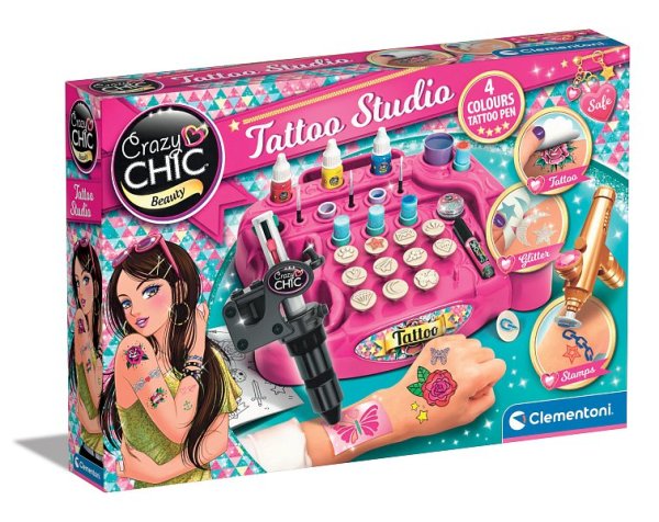 Pro milovníky tetování, super cool sada k vytvoření neuvěřitelných tetování od ruky nebo podle šablony! Pomocí speciálního pera na tělo s vyměnitelnými barevnými hroty se dívky mohou bavit vytvářením vlastních personalizovaných tetování, kreslením je ručně nebo pomocí šablon. Obsahuje také tělové barvy k obarvení vytvořených tetování, houbičky, aplikátory, šablony a knihu tetování s kresbami, tipy a prázdnými listy, abyste si mohli vytvořit svá oblíbená tetování! Rozvíjí kreativitu a zručnost. Rozměr balení: 45,1 x 31,1 x 7 cm Věk: 7+