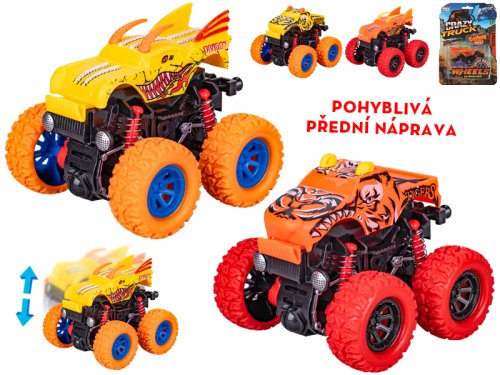 Crazy Truck monster truck 9 cm na setrvačník velká kola - mix barev (oranžová, fialová, zelená, modrá)