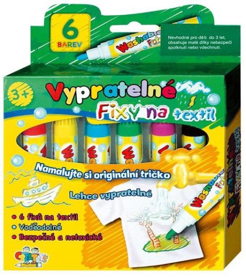 Pokud plánujete nějakou zajímavou akci, můžete si namalovat originální tričko. Až Vás omrzí, vyperete ho a je zase jako nové... Také vhodné pro malé děti, pokud si při tvoření pomalují oblečení, lehce se nechtěné výtvory dají vyprat. Rozměry balení 13 x 13 x 2 cm. Vhodné pro děti od 3 let.