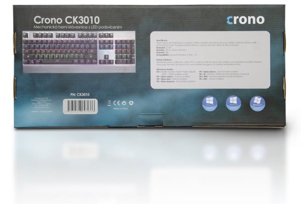Crono CK3010 Barevně podsvícená herní klávesnice ve stříbrném, atraktivním provedení, která určuje komfort díky programovatelným klávesám s vysokým zdvihem. Klávesnici lze k počítači připojit prostřednictvím konektoru USB.