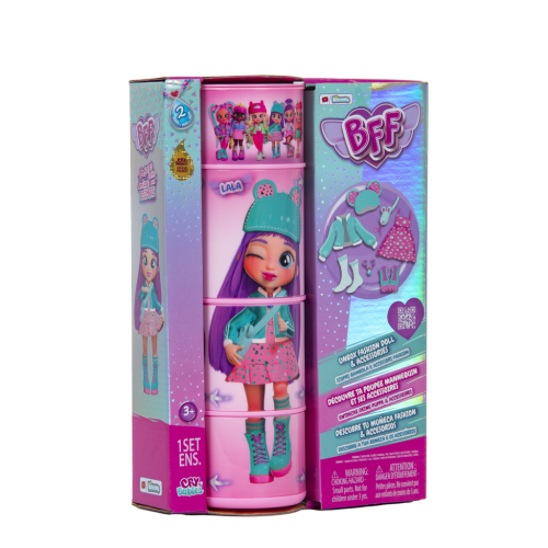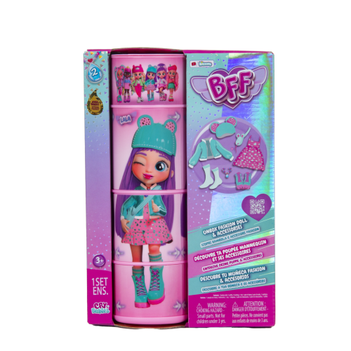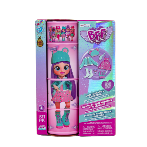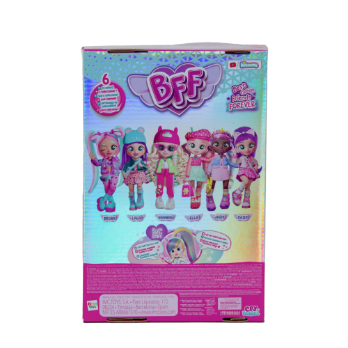 "Cry Babies BFF je sběratelská módní panenka, která ti umožní vyjádřit se, hrát si s módou a ztotožnit se svou oblíbenou postavou z animovaného seriálu Cry Babies Magic Tears. Panenka je vysoká 20 cm, má 15 cm dlouhé, hedvábné nylonové vlasy a spoustu módních doplňků. Tělo panenky má 6 ohebných kloubů pro polohování. Balení je pohyblivé, má otočné válce díky kterým můžeš vidět jak panenka zaujímá různé pózy. Uvnitř balení se nachází panenka a také 9 kusů příslušesntví: 2 kusy oblečení, kabelku, čepici, pár odpovídajíích bot s párem ponožek a náhrdelník!" Balení: 18x27x8cm. Věk: 3+