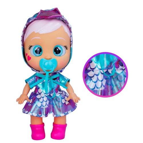 Cry Babies se nyní vydávají ke hvězdám v sérii Cry Babies Stars. Jako všechny vaše oblíbené postavy Cry Babies, když ji vyjmete z úst dudlík budou ronit slzy. Jejich oči jsou plné hviezd stejně jako noční obloha. Vydává až 10 realistických dětských zvuků. Dejte jim dudlík zpět do pusy, aby přestali plakat a byli zase šťastné. S panenkami Cry Babies si děti budou hrát jako s opravdovými miminky. Můžou je chovat, uvidí je brečet, můžou je převlékat a starat se o ně. Vyžadauje 3xAA baterie. Doporučený věk 3+.