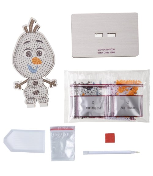 Diamantové malování je skvělý způsob relaxace, je to kreativní zábava pro každého. Pomocí aplikačního pera nanášíte kamínek za kamínkem na označená místa. Balení obsahuje: dřevěnou desku ve tvaru postavičky s předtištěným obrázkem, dřevěný stojan, pero na aplikaci kamínků, misku, vosk na nalepení a sadu barevných kamínků.