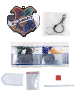 Kreativní sada pro výrobu přívěsku s erbem Bradavic pomocí kamínků.