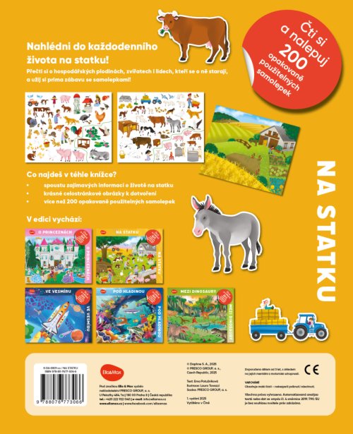 Užijte si spoustu zábavy s úžasnými adhezivními samolepkami, díky nimž stvoříte svůj vlastní venkovský svět! V téhle knížce jich objevíte více než dvě stovky a můžete s jejich pomocí donekonečna dotvářet překrásné celostránkové obrázky, k nimž samolepky jednoduše přilnou. Vedle toho tu najdete také poutavý text plný zajímavých informací o každodenním životě na statku. Zavítáte do světa hospodářských zvířat, plodin a lidí, kteří se o ně starají.