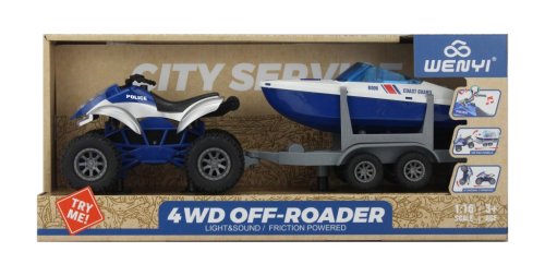 Tato čtyřkolka přináší spoustu zábavy díky světelným a zvukovým efektům! Navíc má odnímatelný přívěs a zvládne kaskadérské triky – umí stát na předních kolech!