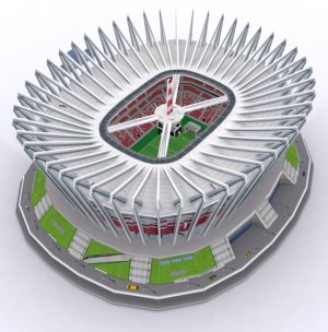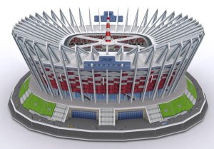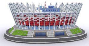 3D puzzle - stavebnice polského stadionu od CubicFun vyrobená ze speciálního materiálu - asi 3mm silné pěny potažené laminovaným potištěným papírem.
