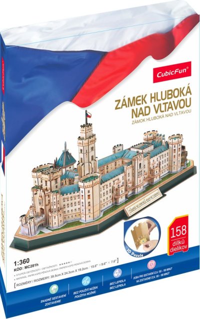 Jedna z nejkrásnějších českých památek nyní také jako 3D puzzle! 3D puzzle - stavebnice od CubicFun vyrobená ze speciálního materiálu - asi 3 mm silné pěny potažené laminovaným potištěným papírem. Sestavování 3D puzzle Cubicfun je zábavou pro celou rodinu. Hotové modely mohou být sběratelským a dekorativním doplňkem bytu nebo dětského pokoje. Dílky se k sobě sestavují pomocí návodu bez použití lepidla a nůžek - předražené dílky pouze jednoduše vylomíte z archu. Obtížnost 5 , 6 Orientační čas na sestavení: 150 - 180 minut Rozměr složeného puzzle cca 39,5 x 24,3 x 19,2 cm