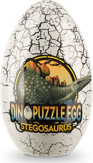 Dvojitá zábava - na jedné straně puzzle ilustrace dinosaura, na druhé straně abstraktní vzor s dinosauřími fosiliemi odolné kovové vajíčko pro bezpečné uložení puzzle vyrobeno z pevného tvrzeného papíru, který se neroztrhne ani nezlomí potištěno netoxickými inkousty na sojové bázi perfektní velikonoční dárek, na párty, k narozeninám nebo k Vánocům