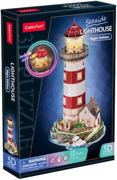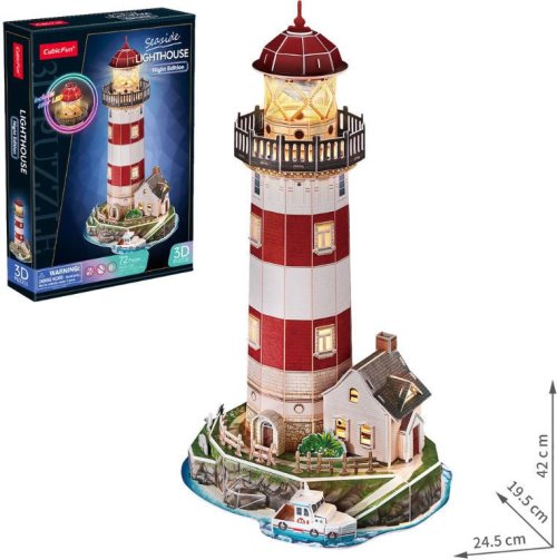 Jedinečný 3D model majáku s LED osvětlením! 3D puzzle - stavebnice ze série Night Edition od CubicFun vyrobená ze speciálního materiálu - asi 3mm silné pěny potažené laminovaným potištěným papírem. Sestavování 3D puzzle Cubicfun je zábavou pro celou rodinu. Hotové modely mohou být sběratelským a dekorativním doplňkem bytu nebo dětského pokoje. Dílky se k sobě sestavují pomocí návodu bez použití lepidla a nůžek - předražené dílky pouze jednoduše vylomíte z archu. Poznámka: Baterie nejsou součástí balení. Rozměr složeného puzzle cca 19,5 x 24,5 x 42 cm