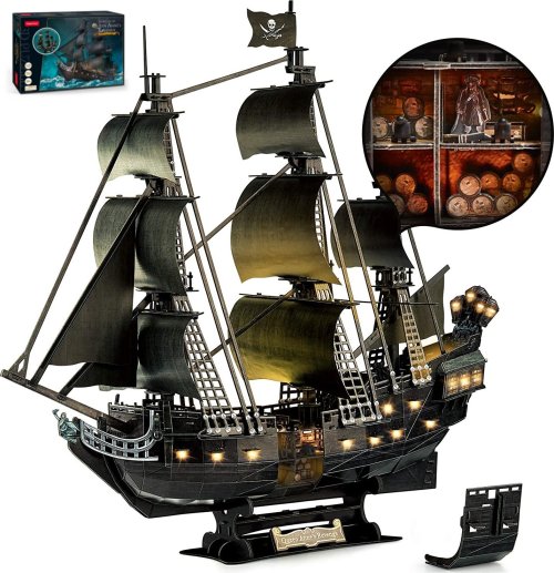 Úchvatný 3D model plachetnice s LED osvětlením! Plachetnice Queen’s Anne Revenge (Pomsta královny Anny) patřila obávanému pirátu Černovousovi. Loď Černovousovi pomohla umocnit status nejobávanějšího piráta a to i přesto, že ji využíval méně než jeden rok. 3D puzzle - stavebnice s LED osvětlením od CubicFun vyrobená ze speciálního materiálu - asi 3 mm silné pěny potažené laminovaným potištěným papírem. Sestavování 3D puzzle Cubicfun je zábavou pro celou rodinu. Hotové modely mohou být sběratelským a dekorativním doplňkem bytu nebo dětského pokoje. Dílky se k sobě sestavují pomocí návodu bez použití lepidla a nůžek - předražené dílky pouze jednoduše vylomíte z archu. Obtížnost: 6 Orientační čas na sestavení: 240 minut Rozměr modelu: 68 x 26 x 64 cm Rozměr složeného puzzle cca 68 x 26 x 64 cm