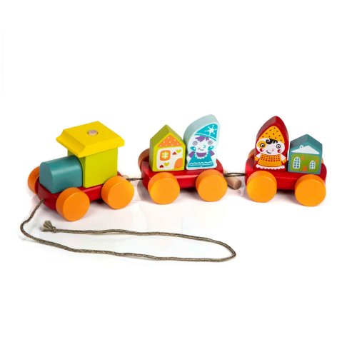 CUBIKA je nová značka dřevěných hraček vyrobených pouze z ekologicky pěstovaného dřeva s velmi precizním opracováním a líbivým designem. Tahací pohádkový vláček se dvěma trpaslíky je dřevěná skládačka s 10 barevnými díly, které je třeba poskládat tak, aby vlak mohl své pasažéry bezpečně převážet. Tahací vláček je ideálním společníkem na cesty pro malé děti. Sortiment hraček značky CUBIKA pomáhá dětem rozvíjet především senzomotorické schopnosti a dovednosti, logické myšlení, kreativitu, představivost a různé poznávací znalosti. Hračky jsou vyrobeny z nejkvalitnějšího javoru a buku a k barvení se používají též vysoce kvalitní barvy na vodní bázi, které jsou naprosto bezpečné pro děti a nemají žádný zápach. Všechny výrobky této značky mají německý certifikát TÜV a jsou vyrobeny dle evropské normy pro bezpečnost hraček EN 71. Nevhodné pro děti do 2 let. Vyrobeno v Evropě.