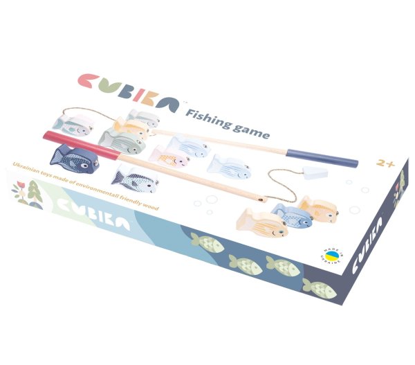 CUBIKA je nová značka dřevěných hraček vyrobených pouze z ekologicky pěstovaného dřeva s velmi precizním opracováním a líbivým designem a tento výrobek patří do nové kolekce vyrobené v pastelových barvách. Rybolov je známá hra pro děti, jejímž cílem je vylovit co nejrychleji nejvíce rybiček z rybníka. K tomu slouží dva pevné dřevěné pruty opatřené na svých koncích magnetem, protože každá rybička má v sobě zabudovaný kovový plíšek. Rybky pak vyskakují z vody jako živé. Délka prutů 31 cm, délka tkaniček 30 cm. Rybičky ve 3 velikostech: 4,5 x 2x 3 cm, 6 x 2 x 3 cm a 6,5 x 2 x 3 cm. Sortiment hraček značky CUBIKA pomáhá dětem rozvíjet především senzomotorické schopnosti a dovednosti, logické myšlení, kreativitu, představivost a různé poznávací znalosti. Hračky jsou vyrobeny z nejkvalitnějšího javoru a buku a k barvení se používají též vysoce kvalitní barvy na vodní bázi, které jsou naprosto bezpečné pro děti a nemají žádný zápach. Všechny výrobky této značky mají německý certifikát TÜV a jsou vyrobeny dle evropské normy pro bezpečnost hraček EN 71. Doporučený věk od 24 měsíců. Vyrobeno v Evropě.
