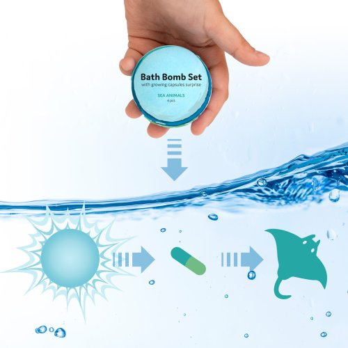 Odstraňte obal, vhoďte do vany s teplou vodou. Po vyšumění se objeví tobolka s překvapením, která sama v teplé vodě vyroste. Po koupeli opláchněte tělo vlažnou vodou. Nevhodné pro děti do 3 let.